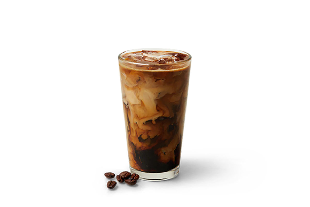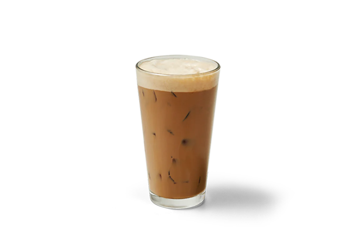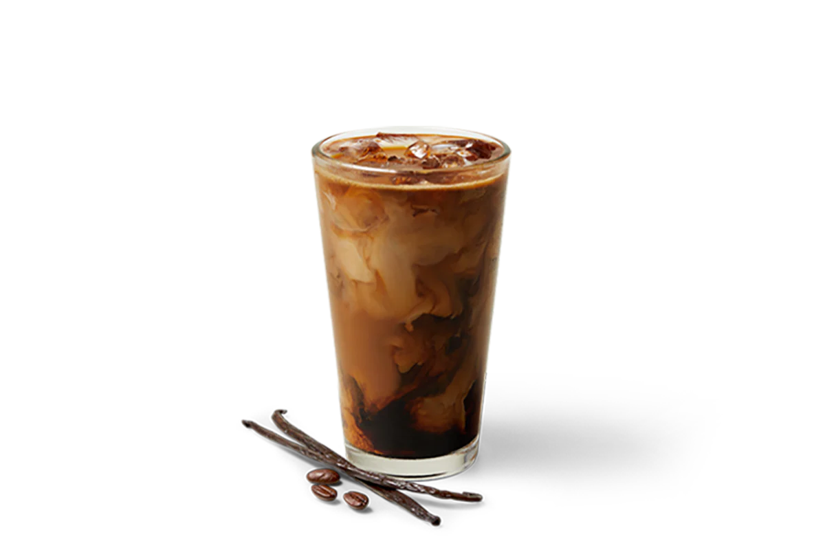 Concentrated Dark Roast coffee and vanilla syrup served over ice, topped with a splash of 2% or skim milk.