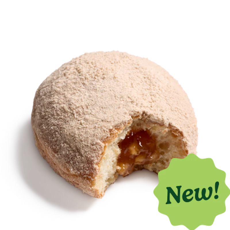The Cinnamon Apple Filled Doughnut takes an unglazed doughnut tosses it in a sweet, powdered cinnamon flavored coating then is filled with an apple cinnamon filling for a perfect balance of fruity sweetness and spiced comfort. Artificially Flavored.
