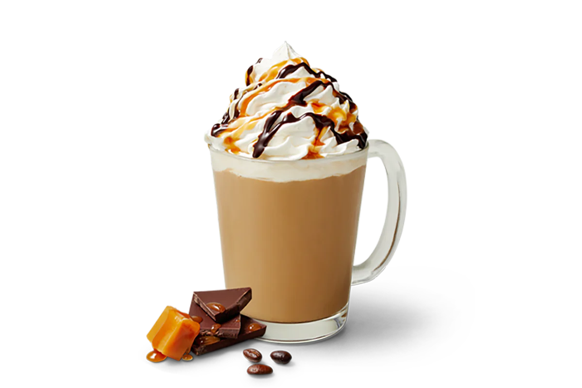 A velvety latte infused with caramel and warm brown sugar sauces, topped with a smooth layer of whipped cream for a cozy, subtly sweet finish. Naturally Flavored with Other Natural Flavors.