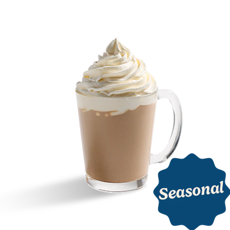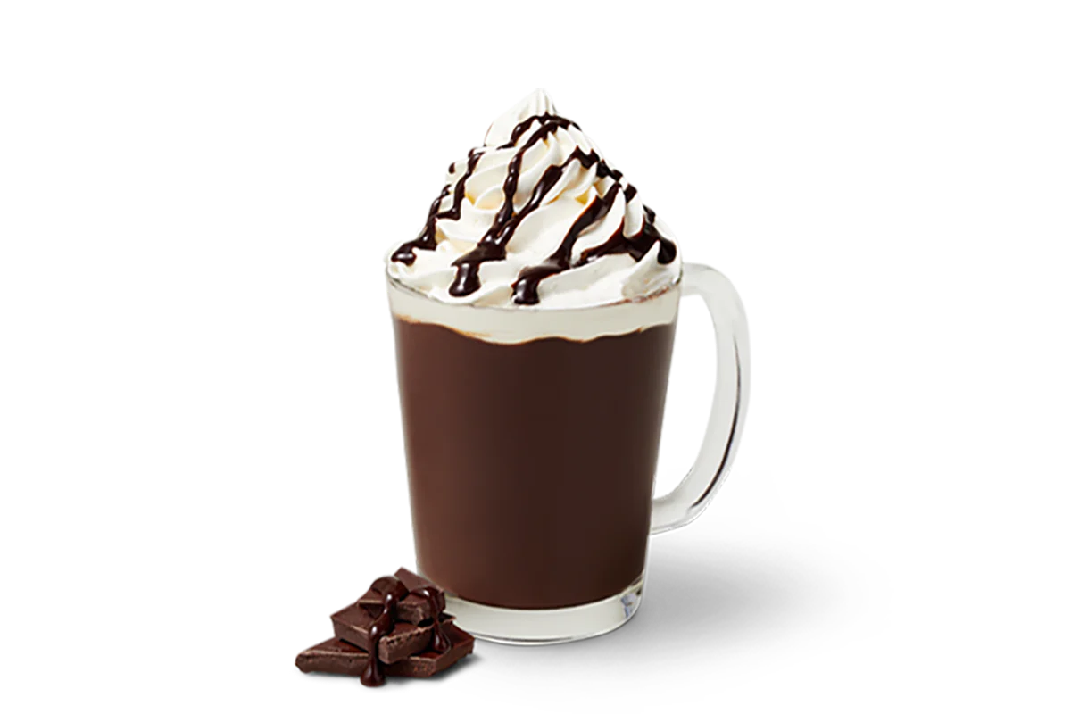 Naturally & Artificially Flavored. A decadent treat. Our Ghirardelli® cocoa is blended with steamed milk and topped with whipped cream and a chocolate drizzle.