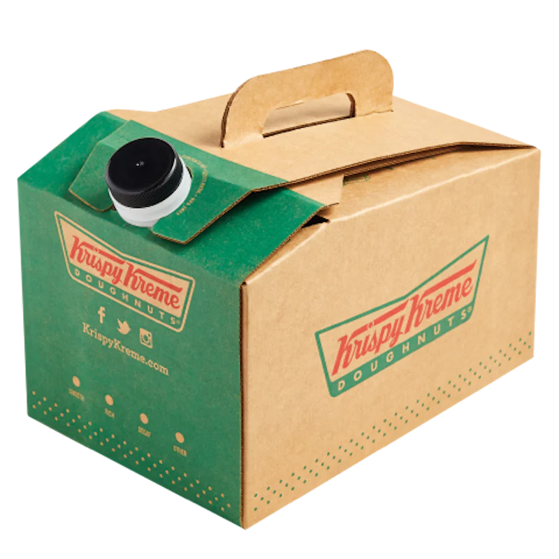 96 ounces of fresh brewed coffee. Brew Boxes come with 10 cups, lids, sleeves and stir sticks. 20 creamers and sugars and 10 Splenda® sweeteners.