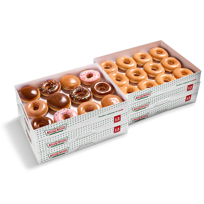 Perfect for parties, meetings, and celebrations big & small! The OG Party Bundle includes: - (6) Original Glazed® Dozens – the iconic, melt-in-your-mouth treat that everyone loves. Serving up to 72 people, this bundle is an easy and delicious way to keep the whole group happy.