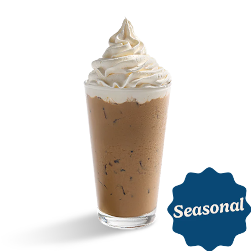 A creamy, espresso ice-blended beverage topped with whipped cream.
