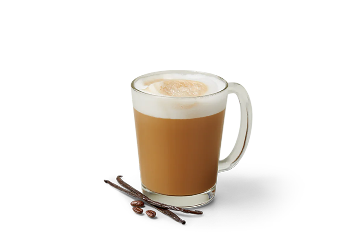Espresso and steamed milk flavored with vanilla syrup.