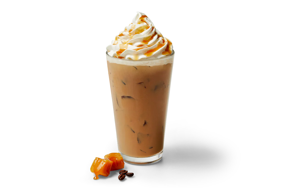 A velvety iced latte infused with caramel and warm brown sugar sauces, topped with a smooth layer of whipped cream for a cozy, subtly sweet finish. Naturally Flavored with Other Natural Flavors.
