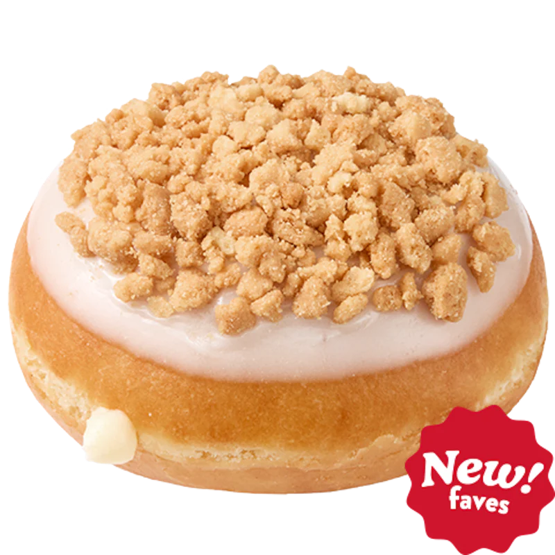 The New York Cheesecake Filled Doughnut is an unglazed doughnut dipped in vanilla flavored icing, topped with golden graham-flavored crunch, and filled with cheesecake Kreme™ for a creamy, tangy bite inspired by the Big Apple’s iconic cheesecake.